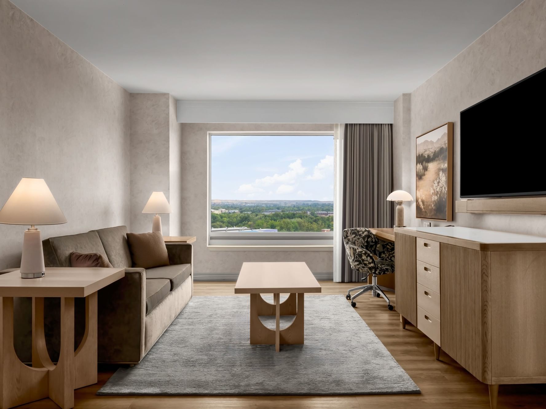 All accommodations at The Grove Hotel offer unrivaled views of the Boise skyline. Surrounded by distinguished foothills, the views also include glimpses of the Grove Plaza, Boise Train Depot, Table Rock, and the Boise River.